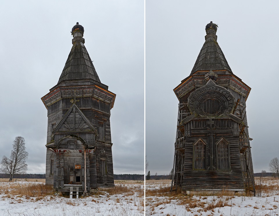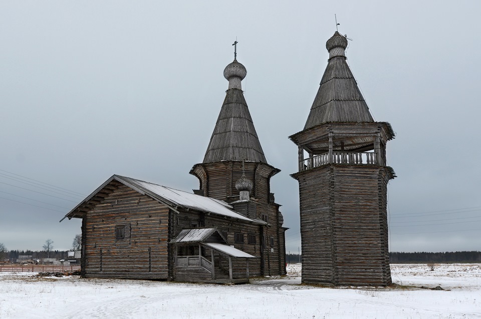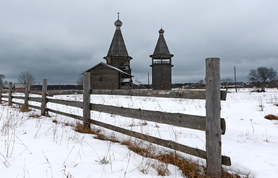 8. Над крышами изб когда-то доминировали шатры Лядинского погоста, одного из «тройников» – двух деревянных храмов и колокольни, которых на территории России осталось всего ничего. Самый известный пример такого «тройника» — архитектурный ансамбль в Кижах.