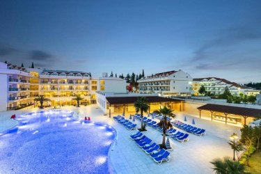 отель недалеко от моря.Номера чистые. Кормят супер(еда разнообразная). Есть водные горки, закрытый бассейн. Есть парковка для авто. До моря 5 минут . На пляже от отеля есть бесплатная кафешка с безалкогольными напитками. Анимация вечером присутствует для нуждающихся, очень неплохая. персонал дружелюбный) полный отзыв