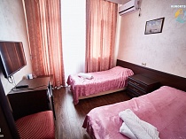 Номера в « Радуге » располагают удобными одно- или двуспальными кроватями, холодильниками, ванными комнатами с новой сантехникой, спутниковым телевидением, электрочайниками и наборами посуды. Все комнаты – с приятным интерьером, недавно проведенным ремонтом, тумбочками и шкафами для одежды, мягкой мебелью.
