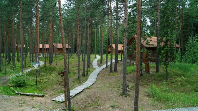 Загородный отдых для двоих или компании до 9 человек в туристической деревне «Кургала»: уютные шале, питание, баня, парковка и не только! Скидка до 58%