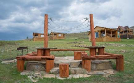 Двухэтажный дом удобно расположен в непосредственной близости к кафе, администратору и магазину. На первом этаже уютная кухня-гостиная с выходом на балкон, санузел. На втором - две комнаты, одна из них гостиная, она проходная, площадью 25 кв.м, В комнате мягкая мебель - диван раскладной и 2 кресла-кровати, журнальный столик, плательный шкаф, телевизор. Из гостиной вход в спальню площадью 10 кв.м, двуспальная кровать, прикроватные тумбочки, туалетный столик. Бунгало сдается целиком, независимо от количества проживающих. Удаленность от берега Байкала – 250 метров.
