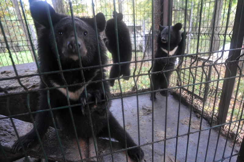 Гималайские медведи, точнее медвежата. В отличие от широко известных бурых медведей, этот вид относится к вегетарианцам. Медведей тут кормят так, что они и не думают впадать в зимнюю спячку, клянча у отдыхающих лакомства не хуже, чем Остап Бендер и Киса Воробьянинов, танцующие лезгинку на Военно-Грузинской дороге. :) Впрочем, медвежата при этом еще и очень трогательно скулят.