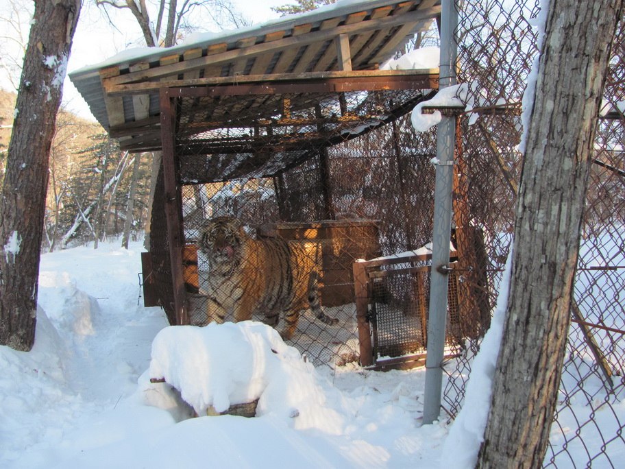Тигрица-подросток Вилька (хотя ее имя я помню не очень отчетливо). Она попала в «Утес» с серьезными ранами. Операция ее спасла буквально чудом, но с тех пор Вилька ненавидит людей. На зевак она шипит, как кошка и рычит, как настоящий тигр.
