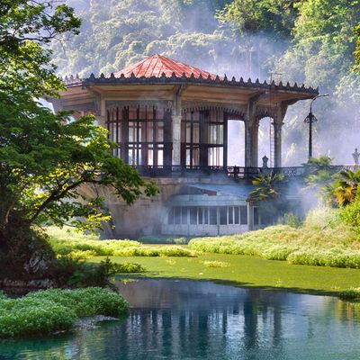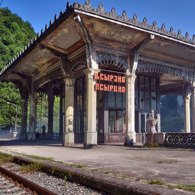 - изумрудное озеро и необычную железнодорожную станцию Псырцха;