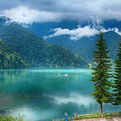 Тур проходит по высокогорным озерам и водопадам Рицинского национального парка.