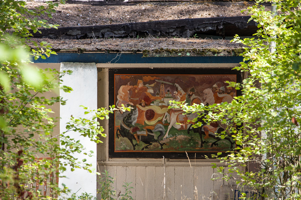 Местами ржавые, но целые ворота и длинная бетонная вывеска с надписью « п/л Автомобилист». Никаких сомнений, куда мы прибыли не возникло. Перед нами — чудом сохранившийся пионерский лагерь со времён СССР.