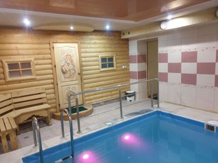 Двухэтажный дом находится под Бузулуком, окружен лиственными деревьями, во дворе есть ели. В доме есть гостиная, 9 спален, 3 санузла, полноценная кухня для самостоятельного приготовления еды. Кроме того, во дворе есть просторная мангальная зона - летняя кухня с двумя очагами, длинным столом и скамьями. Отдыхающим предоставляются дрова, бесплатно. Русская баня с бильярдом и комнатой отдыха, баня входит в аренду дома. В доме есть телевизор и музыкальный центр.