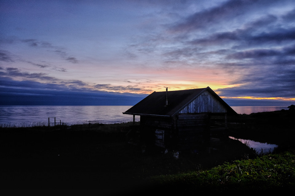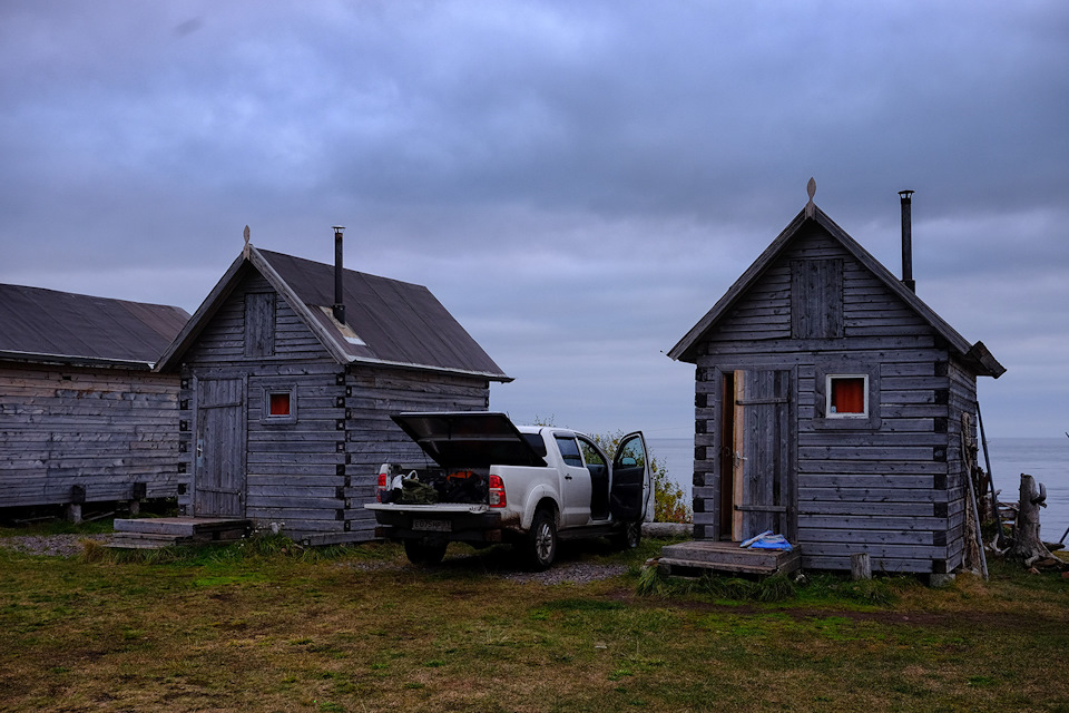 Ночевать собирались в палатке-машине, но как-то спонтанно подвернулся вариант с домиком в Лодочном Ручье. Подкупила баня с можжевеловыми вениками. Да и дрова "в комплекте" с нормальным столом тоже оказались не лишними. К тому-же от мыса Корабль — километра 2 всего.