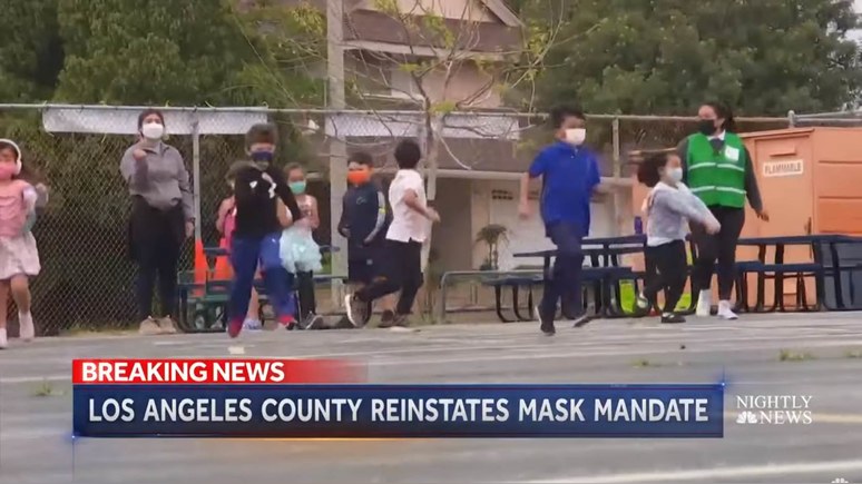 Сегодня вечером крупнейший округ страны Лос-Анджелес делает шаг назад. С воскресенья в нём начинает действовать требование носить маски в помещениях — даже для вакцинированных, что затрагивает десять миллионов местных жителей и идёт вразрез с рекомендациями Центров по контролю и профилактике заболеваний США (CDC). Это очевидный сигнал о растущем беспокойстве относительно очень заразного варианта «дельта».