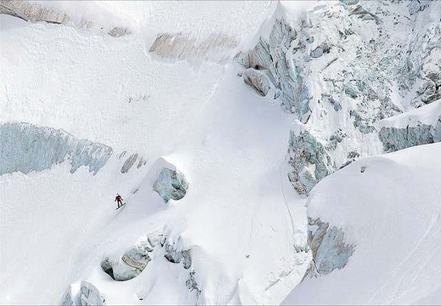 Франсуа быстро огляделся и рванул вниз с обрыва, приземлившись точно в глубокий мягкий сугроб всего пару метров шириной. Хорошие лыжи сейчас трудно найти, поэтому остальные свои лыжи сняли и передали их по одной вниз, чтобы потом осторожно сползти за ними. В громоздких лыжных ботинках идти было неудобно и страшновато, поэтому все очень обрадовались, снова защелкнув на себе крепления. Мы оказались в одной из расщелин Пойнт Трифид, или, сокращенно, Трифид. Мы просто спустились в нее чуть пониже.