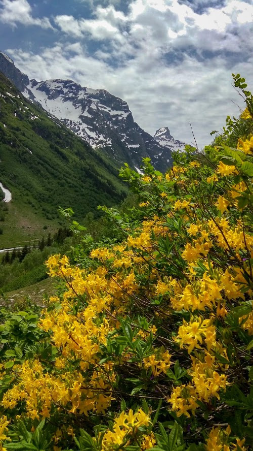 В горах цветет рододендрон желтый. 🌻