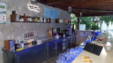 Достоинства. Совсем недавно вернулись из этого отеля. Скажу честно, до этого не были в Мармарисе, отдыхали только в больших отелях Кемера, так что были шокированы размерами территории: нам она показалась довольно маленькой. Но, прогулявшись по набережной и посмотрев на другие отели, поняли, что для Мармариса территория большая и очень зеленая, чего не скажешь о других отелях. Так что если вы были лишь в больших отелях других регионов, как мы, готовьтесь. Также практически все отдыхающие - иностранцы, поэтому не весь персонал говорит по-русски, только по-английски (но мы иногда не понимали сказанное из-за жесткого акцента некоторых работников). Есть наши девушки-аниматоры, также русским владел на начальном уровне один официант. Поэтому, если английский знаете плохо, стоит присмотреться к какому-нибудь другому региону. Что касается номера, то тут все стандартно, ничего необычного. Дополнительное место представляет из себя раскладное кресло, оно удобное и спалось на нем хорошо. Что немного расстроило - мини-бар не пополнялся ежедневно, только в день заезда. Положили шоколадку, колу, фанту, спрайт, воду с газом и маленькую пачку чипсов. Вода без газа была каждый день. Горничные пару раз не приносили дополнительное полотенце, забирали грязное, а на новое не меняли. То же было и с пепельницей. Горничные говорят только по-турецки, пытались объяснить, что они забыли принести, они не понимали. В разговоре с ними пользовались гугл-переводчиком. Что касается кухни, то здесь все прекрасно. Все вкусно и разнообразно, голодными точно не останетесь. Есть небольшое примечание - в баре есть безлактозное молоко. Возможно, многим эта информация не понадобится, но тем, у кого непереносимость лактозы, обязательно пригодится. Анимация хорошая, ребята всегда зазывали играть в разные игры. Есть вечерняя программа - то живая музыка в баре на пляже, то выступления акробатов, то турецкая ночь. В лобби почти каждый вечер играет пианист Виктор. Насчет пляжа. Все чисто. на первый взгляд. Убирают крупный мусор, но мелкий (бычки, шелуха от каких-то семече