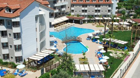 Отель находится в курортном центре Сиде, в районе Чолаклы. На расстоянии всего 260 м от песчаного пляжа. В номере имеется керамическое покрытие, центральный кондиционер, фен, ТВ, телефон, балкон, мини-бар. Вы можете посетить салон для игр, телезал, турецкую баню, поиграть в настольный теннис, или оценить теннисный корт и много другое. Также множество развлечений для детей, детский бассейн, площадка для детей, клуб для детей 4-12 лет, детская горка. Тип питания в отеле «шведский стол», а так же различные закуски на пляже. Отдохнуть тут можно всей семьей.