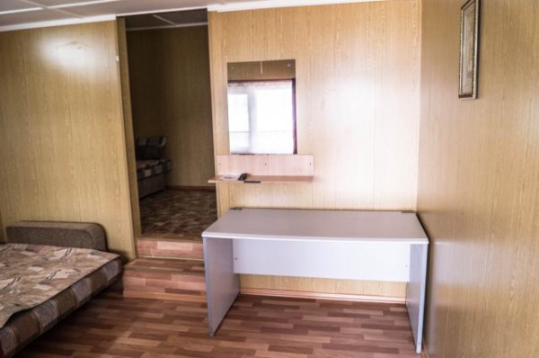 В первом блоке – со стороны сопки расположены 10 однокомнатных номеров (площадь комнаты - 16 кв.м) и 2 двухкомнатных номера (площадь комнаты - 12 кв.м). Все номера одинаково укомплектованы: двуспальный раскладной диван, два дивана типа "тахта" (односпальные), шкаф, столик, телевизор с приемом 5 каналов, небольшой холодильник, зеркало, коврики, все необходимое для уборки. Возле каждого номера расположены места для самостоятельного приготовления и приема пищи: два стола и лавки