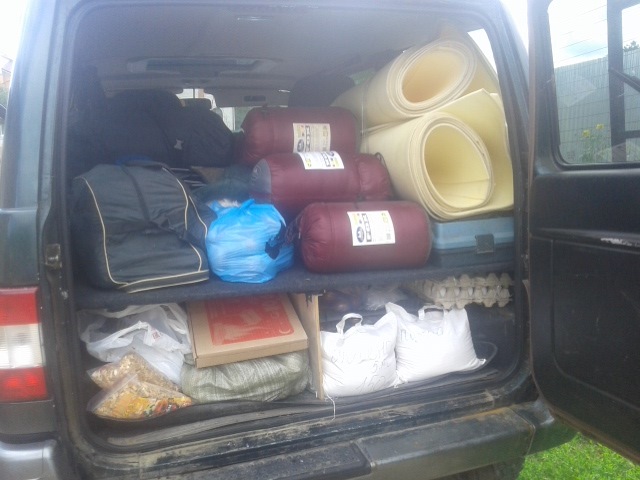 Собрались в две семьи с детями. вещи все загрузили в патрика и я с женой туда же. Влезло очень много вещей и продуктов. Остальные ехали на nissan note.