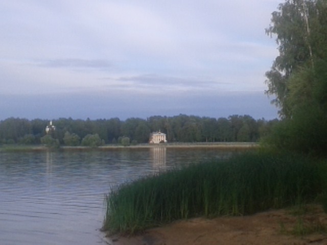 Покупался, нажарился шашлыка, картошки, ухи, макарон с тушканом, нарыбачился, расслабился, наконец уже от этой городской суеты, посидели у костра, наконец-то нормально провел время с женой, а дома то работа, то дела, то с ребенком играем, то патрика делаю ;) а тут релакс, ничего лишнего. На противоположном берегу усадьба Горетова и Троицкая церковь.