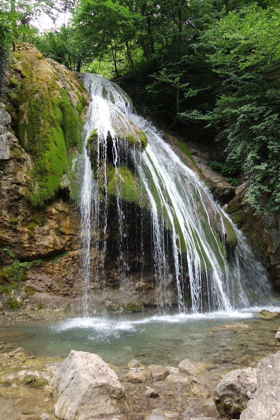 На следующий день уже полной колонной выдвигаемся на водопад Джур-Джур. Идём по Османду, а он ведёт именно так, как нам нужно — по грунтовой дороге почти к самому водопаду. По пути встречаем Дастера, который авторитетно нам заявляет, что дорога-то ведёт на водопад, но мы по ней не проедем. Как правило, когда нам говорят, что мы не проедем, мы на верном пути. И действительно, куда уж нам, ведь здесь возят туристов околостоковые козлики. Подъём усыпан обломками уазовских рессор. На парковке было замечено, что полуоси у них прикручены не на все болты — видимо, чтобы быстрей менять. Потому как дорога довольно интересная, а Уазики идут по ней на таких ходах, что страшно становится.