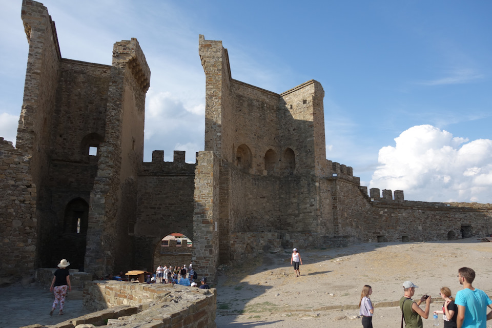 После длительного ночного перегона нашей первой остановкой(не считая кратковременного сна в полях) стала Феодосия. В этом году программа у нас получилась гораздо более культурной, чем в прошлом, мы заехали во множество дворцов и крепостей. И в Феодосию мы заехали как раз ради крепости.