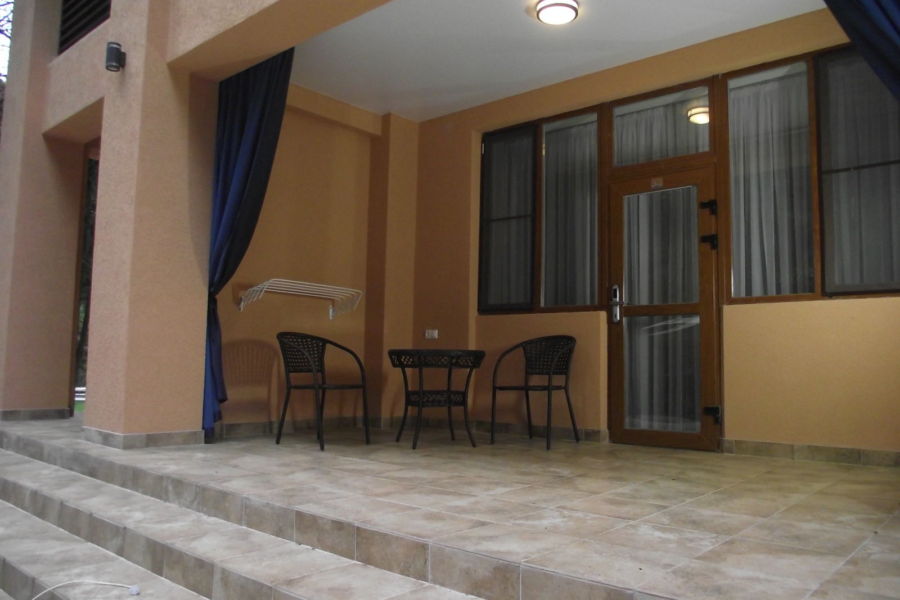 Двухэтажный корпус отеля занимает небольшую территорию площадью 1100 кв. метров.