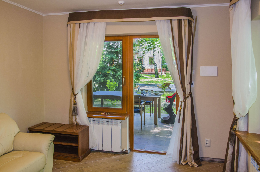 Просторный комфортабельный светлый номер категории Семейный Люкс состоит из двух комнат - в одной большая двуспальная кровать (160*200 см) или две односпальные кровати (80*200 см) (по желанию) и небольшой диванчик и миникухня, во второй, прекрасно подойдет для людей ценящих уют, функциональность и практичность каждой детали интерьера. Санузел с душевой кабиной, раковиной и унитазом в каждом номере. Расположен на втором этаже.