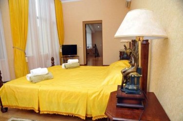 Оснащение: одна 2-спальная кровать, прикроватные тумбочки, телевизор в спальне, мягкая мебель, телевизор, холодильник, трюмо в гостиной, внутренняя связь с ресепшен, кондиционер, письменный стол, стул.