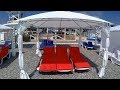 Кое-где островки шезлонгов под зонтами и тентами, все они в прокате. В случае бюджетных каникул придется нежиться на солнце, лежа на камнях, благо они крупные и плоские.