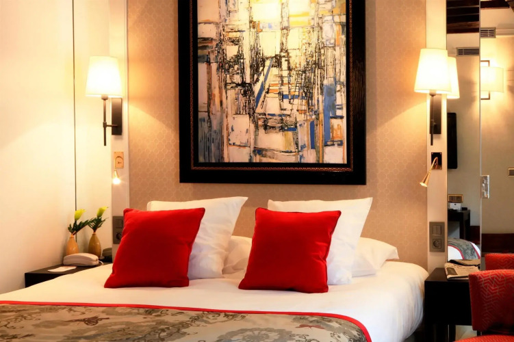Отель располагается на территории Латинского квартала, что автоматически делает доступными многие достопримечательности исторического и культурного Парижа. Так, на прогулку до Нотр-Дама вы потратите не больше десяти минут, а Люксембургский сад, который занимает второе по размерам место во французской столице, находится в пяти минутах. Элегантные номера и люксы гарантируют комфортность проживание. Интерьер не перегружен деталями.