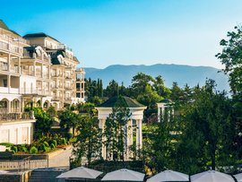 Один из самых старинный и красивых комплексов Ялты, известный в России и за рубежом. Находится на набережной, имеет великолепное оформление. Ему принадлежит собственный пляж, оборудованный лежаками и зонтами от солнца.
