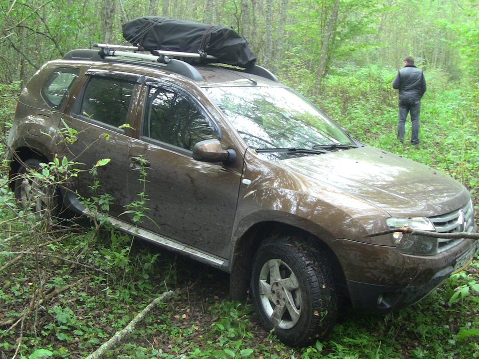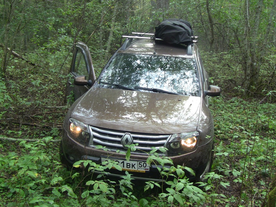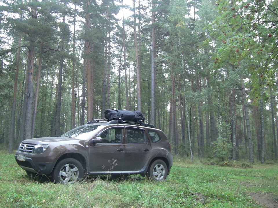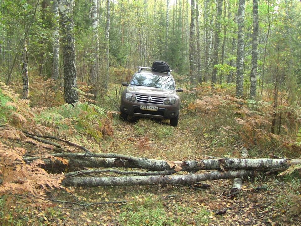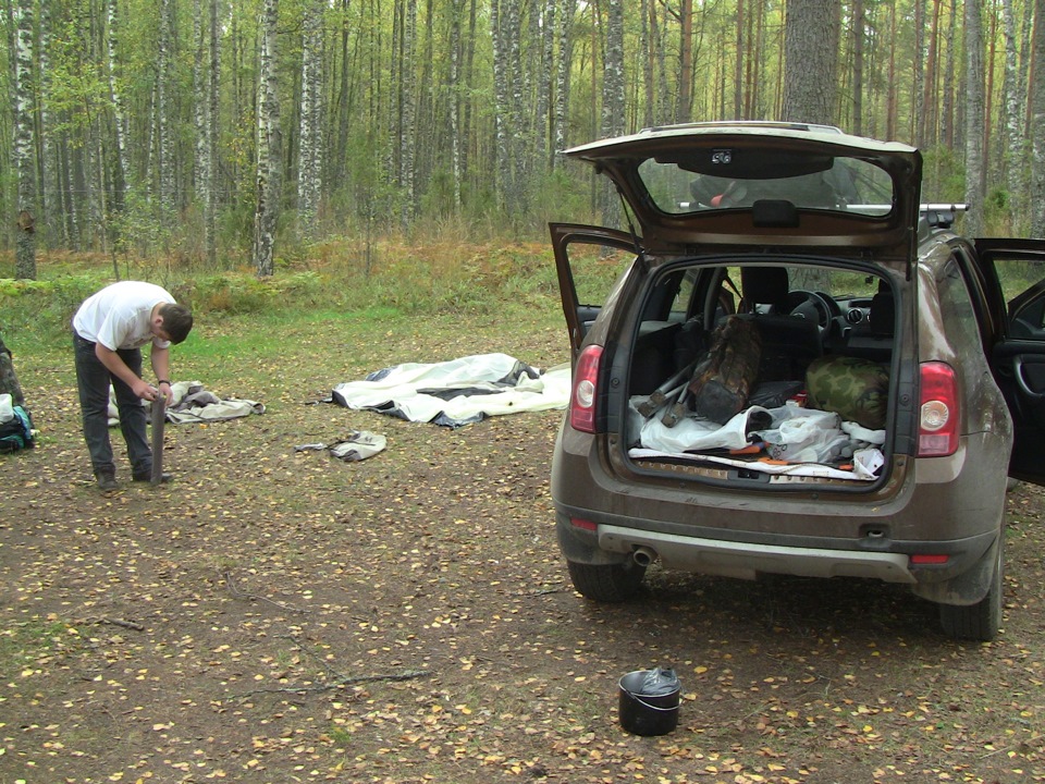 Разбиваем лагерь.И тут оказывается что потеряли где то одну палатку.Видимо она вывалилась из багажника.Друг остается в лагере, а я с напарником мчусь через лес по старым следам в поисках палатки.Выехали к одному месту.Стоит Nissan X-Trail, уже собирается уезжать.Мы спрашиваем у грибника не видел ли он нашу палатку, и тут он открывает багажник и отдает ее нам.Еще минута и его бы не было на месте.За что ему огромное человеческое спасибо!
