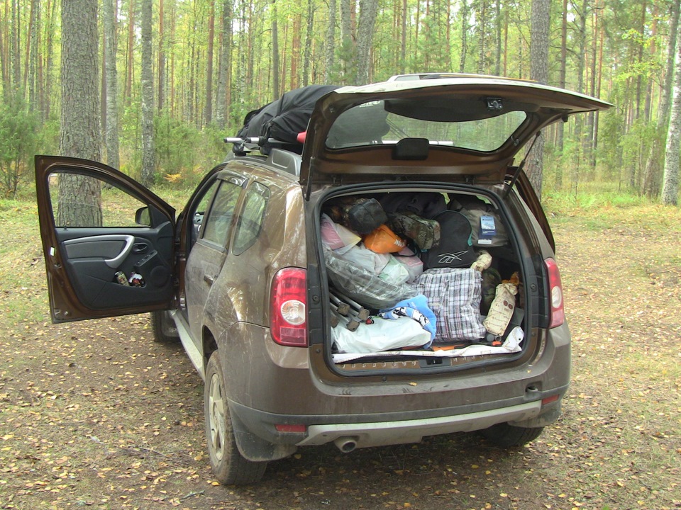 Влезли в мой дастер втроем+куча еды еще, все барахло, в багажнике мотор, наверху лодка.Все поместилось, почти под завязку, но до потолка можно было еще набивать.