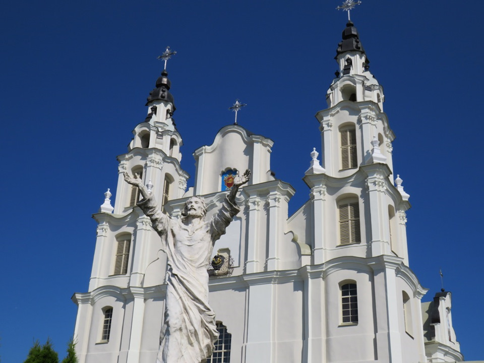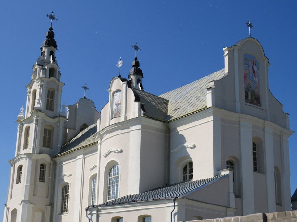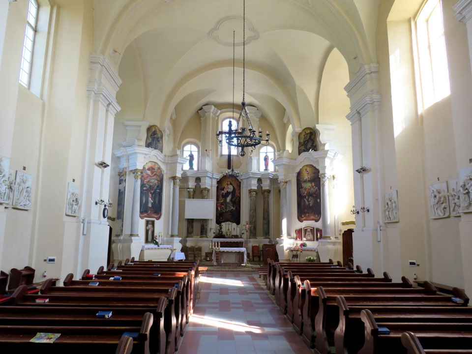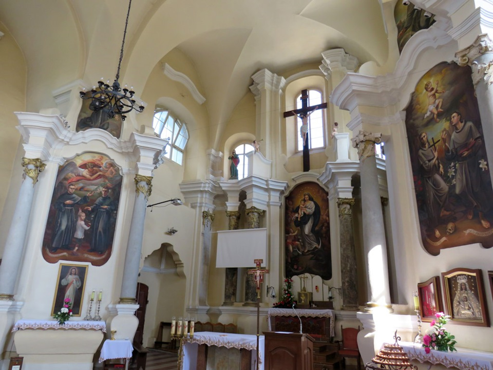 Выезжаем утром воскресенья. Буквально через пол часа выходим на осмотр великолепного костела св.Михаила Архангела, построенного в 1745 году в качестве главного храма францисканского монастыря, основанного на этом месте в 1702-м.