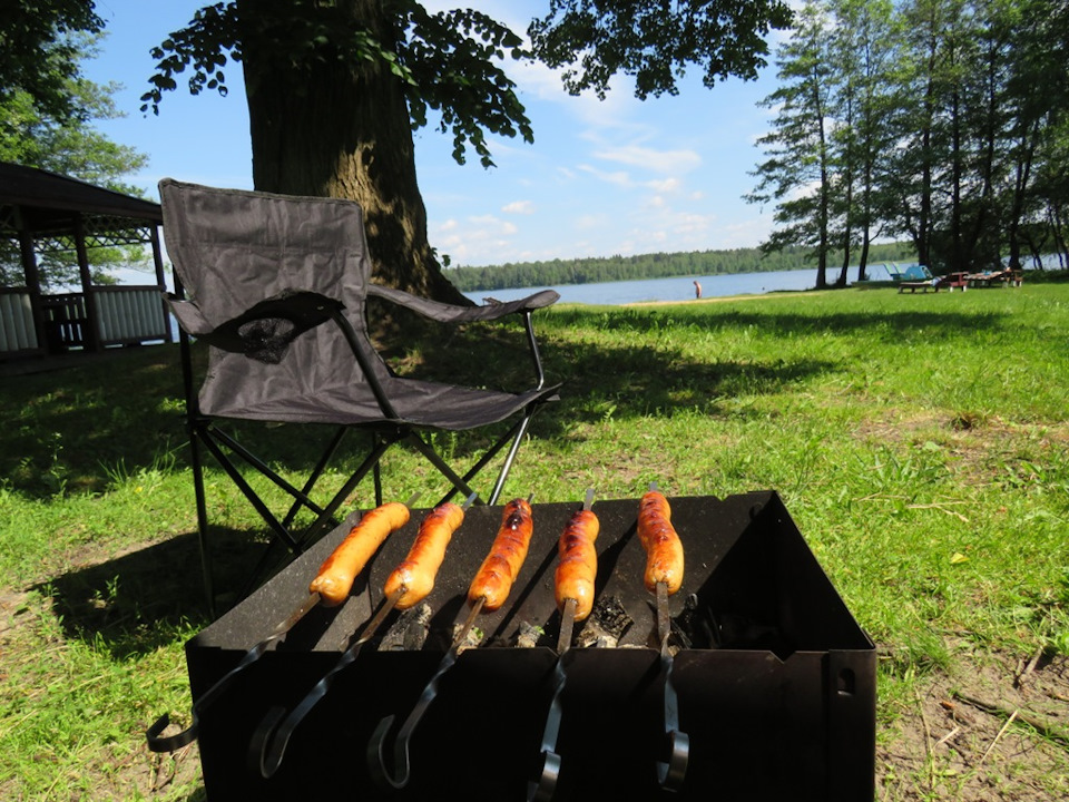 Занимаем маленькую беседку. Раскладываю походный мангал и быстренько готовлю перекус.