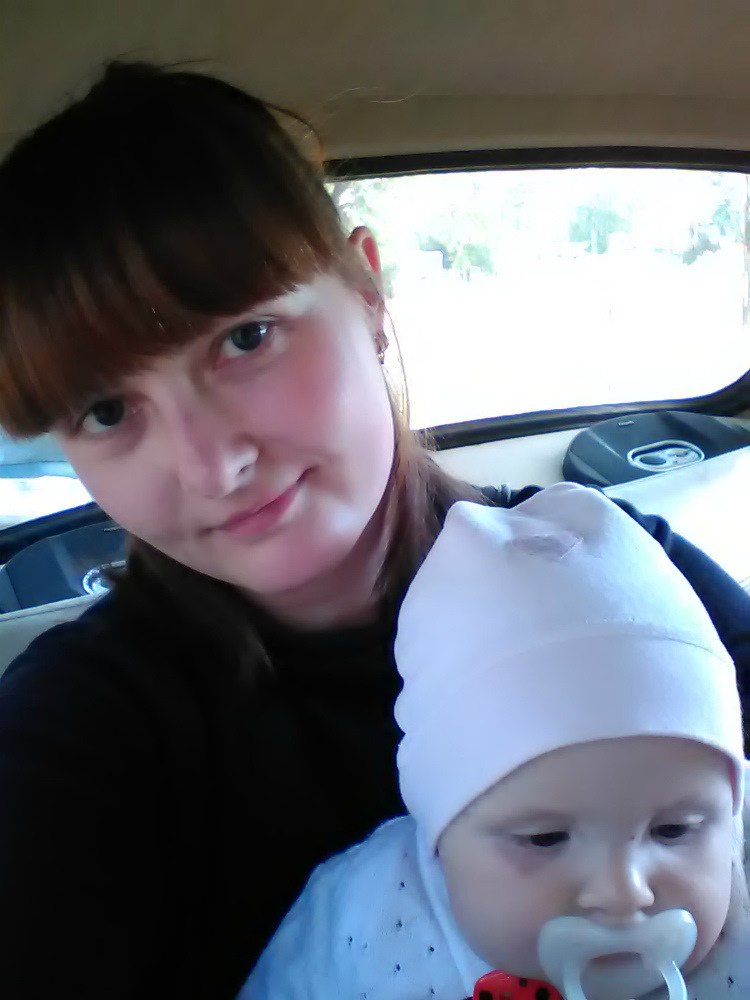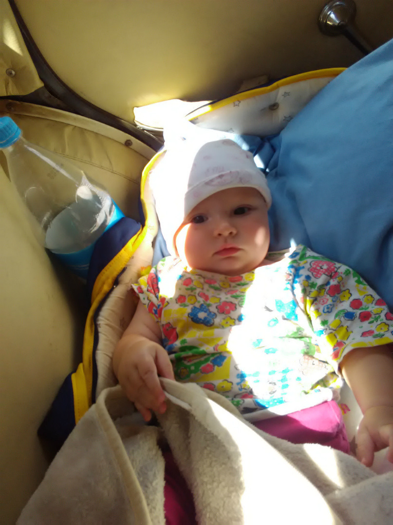 В дороге.Старшая дочка ехала со мной на переднем диванчике.
