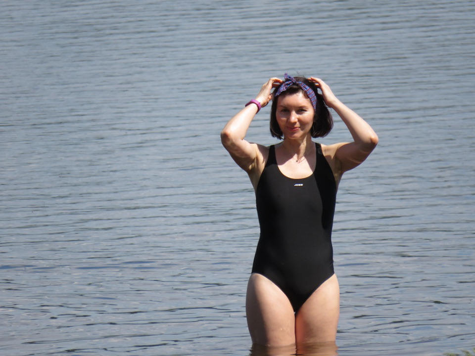 Жена тем временем "разведывает" воду и с радостью отмечает, что она теплая. Открываем купальный сезон! Замечательно проводим большую часть дня, загорая и купаясь.