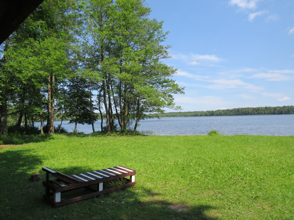 Есть пара беседок, лежаки, кострище, ящики с дровами, туалет и мусорные баки.