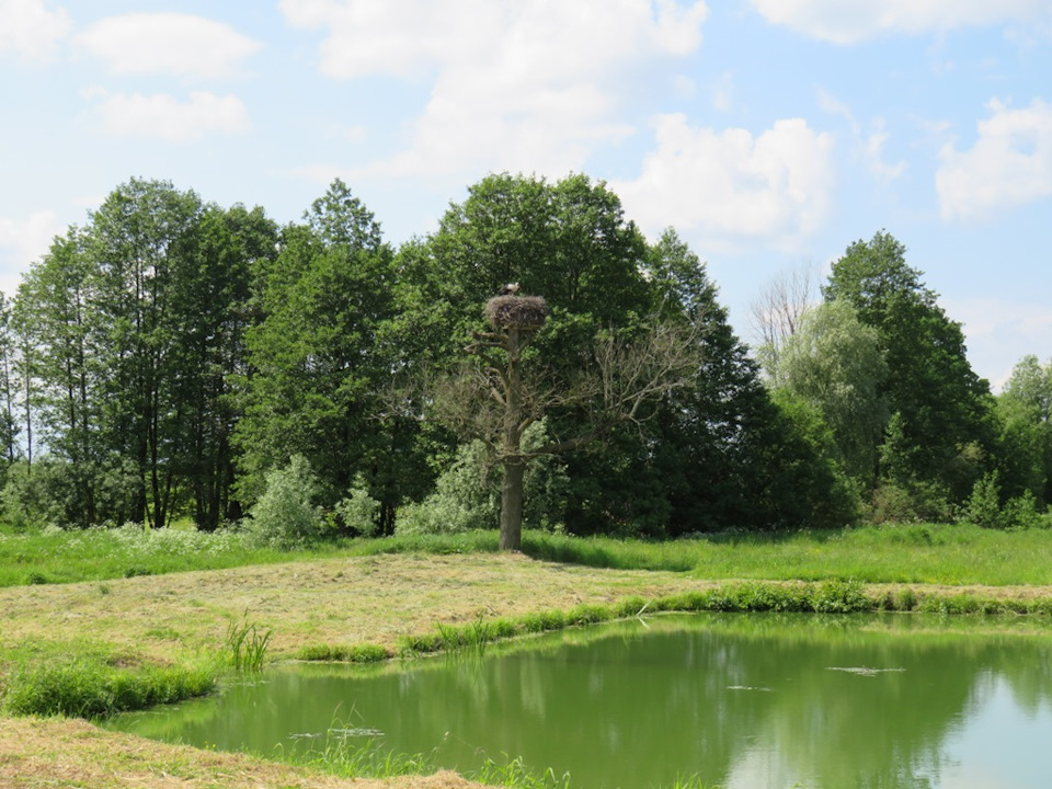 На обратном пути первым делом заезжаем в Налибоки. Нас встречают десятки столбов, увенчанных гнездами аистов.