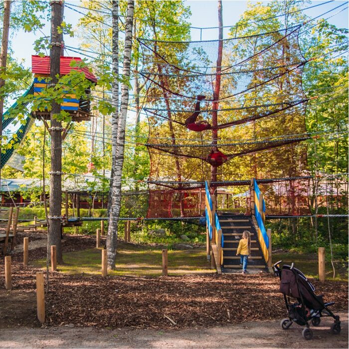 Мы находимся на территории старинного финского парка площадью 7 Га. Аттракционы подойдут для всех возрастов: батуты, верёвочные трассы, лазилки и строилки. Даже взрослые смогут найти себе развлечения по вкусу.