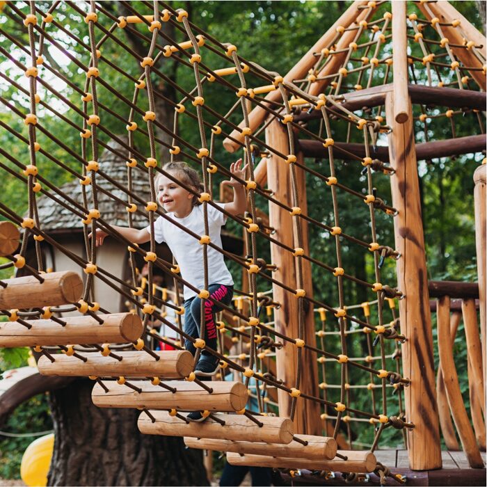 Отличный способ проверить силу духа юных героев! Только самые храбрые справятся с канатами!