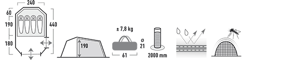 кемпинговая, 5-местная, спальное место: 220x240x160 см, окно, 360x240x170 см, 6 кг