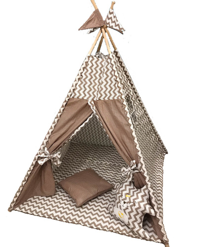 Бестселлер Вигвам детский с ковриком кофейный 120*120*160.Комплект: Палатка с окошком, каркас, 4 стойки, матрасик стёганный с петлями, подушка-кошечка, подушка стандартная, 4 флажка на верх вигвама, система антискладывания, фиксатор каркаса, веревка.