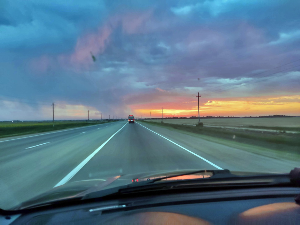 В 5 мы уже встречали рассвет где-то за Краснодаром.