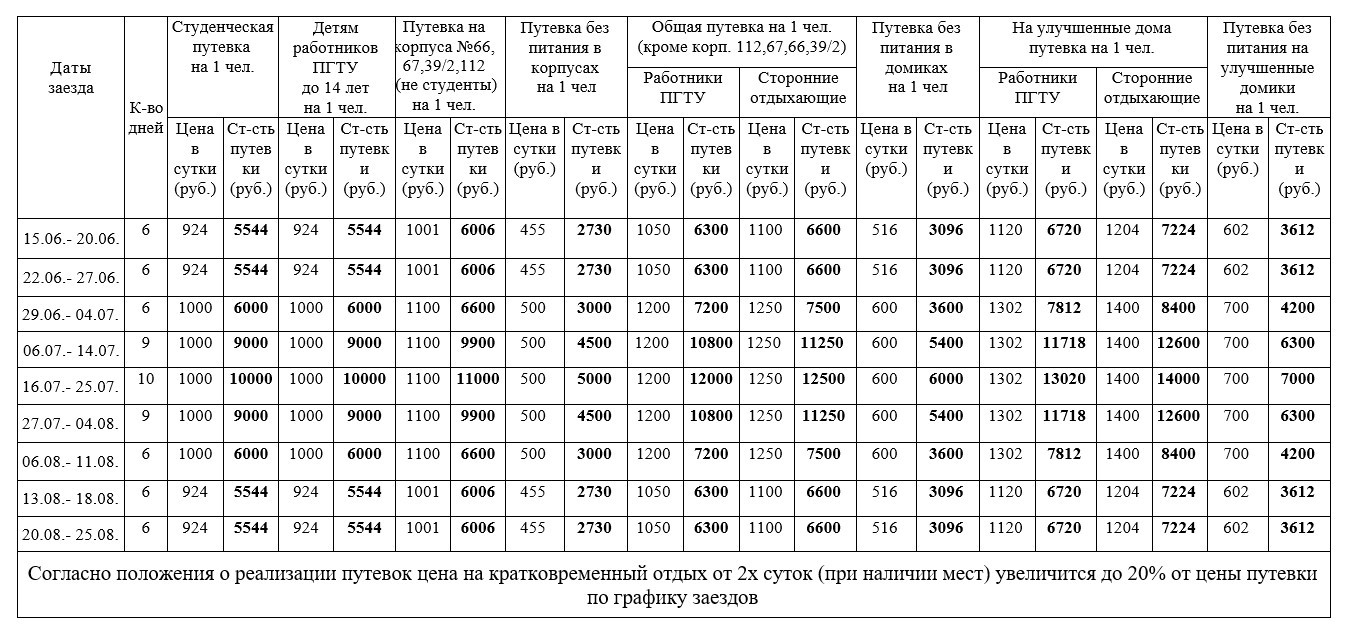 8. Работникам университета при бронировании, оплате путевок и в период отдыха в лагере, необходимо иметь с собой документ, подтверждающий принадлежность к ПГТУ.