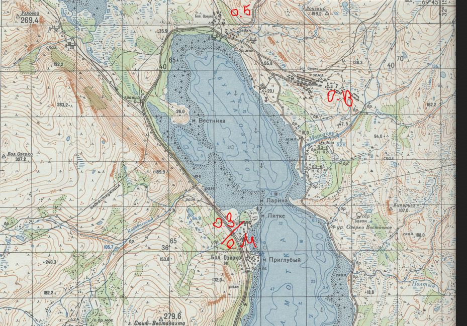 О.Б. — это озерко Большое, и оно расположено совсем не там, где его сейчас рисуют карты.