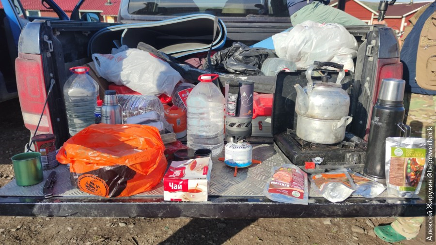 Что касается питания, то мы с собой брали пресную воду, несколько горелок, чай с печеньками и пакеты с быстрой едой "Кронидов".