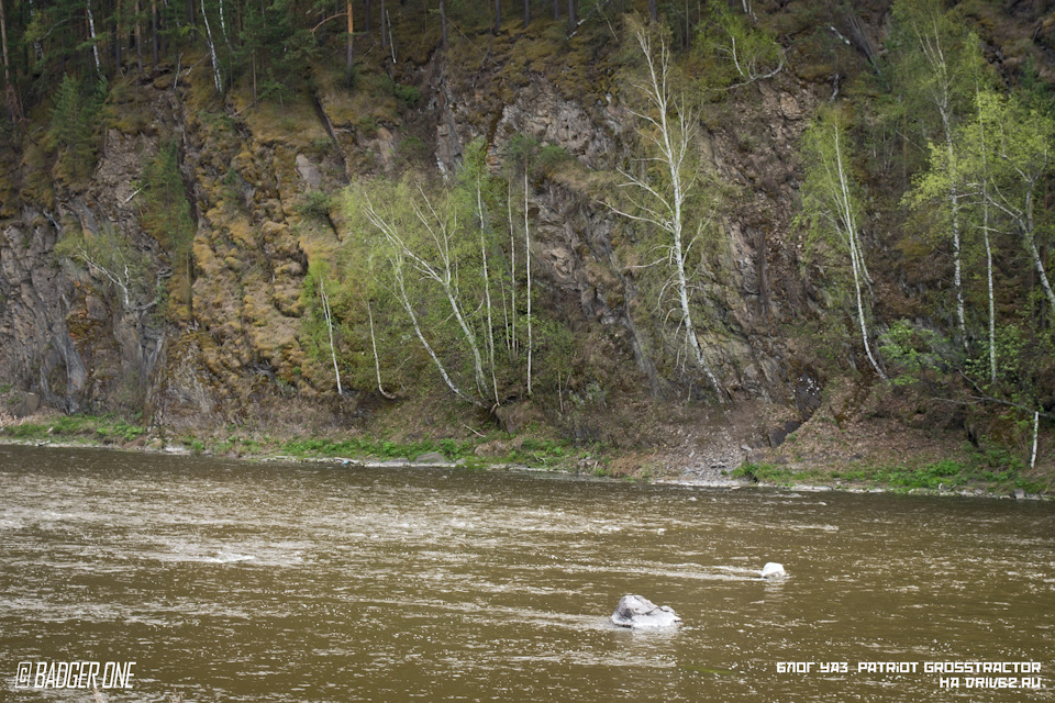 Было видно, что ему не хватает первой пониженной — водитель ехал практически на тормозах. Но кому страшно, может проехать дальше по берегу, там пологий спуск.