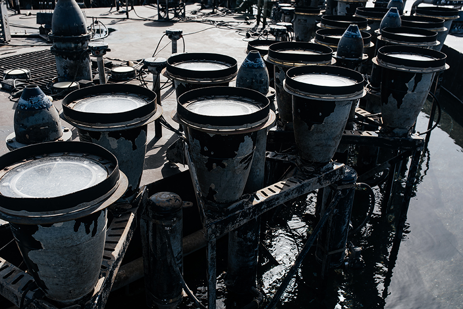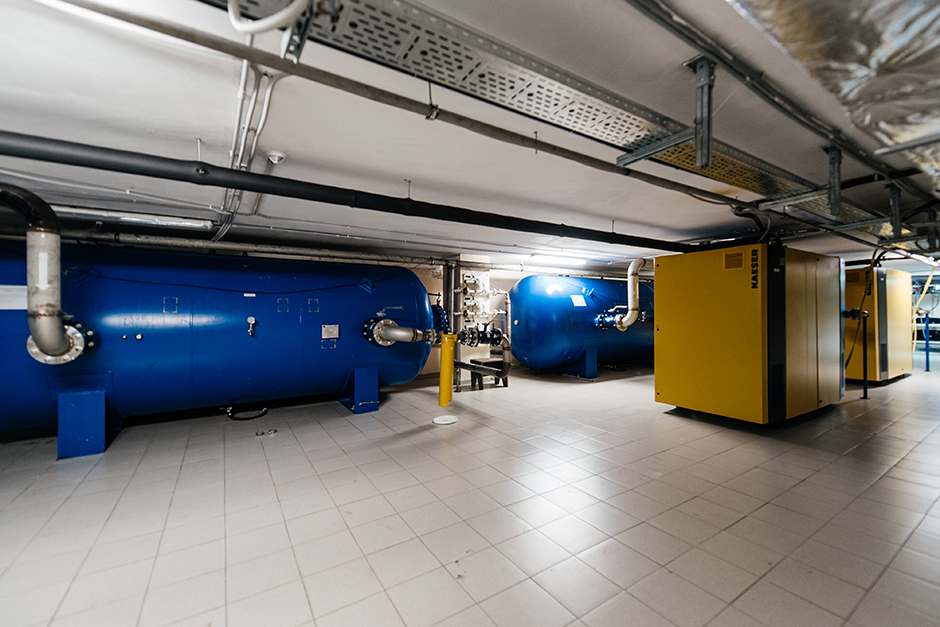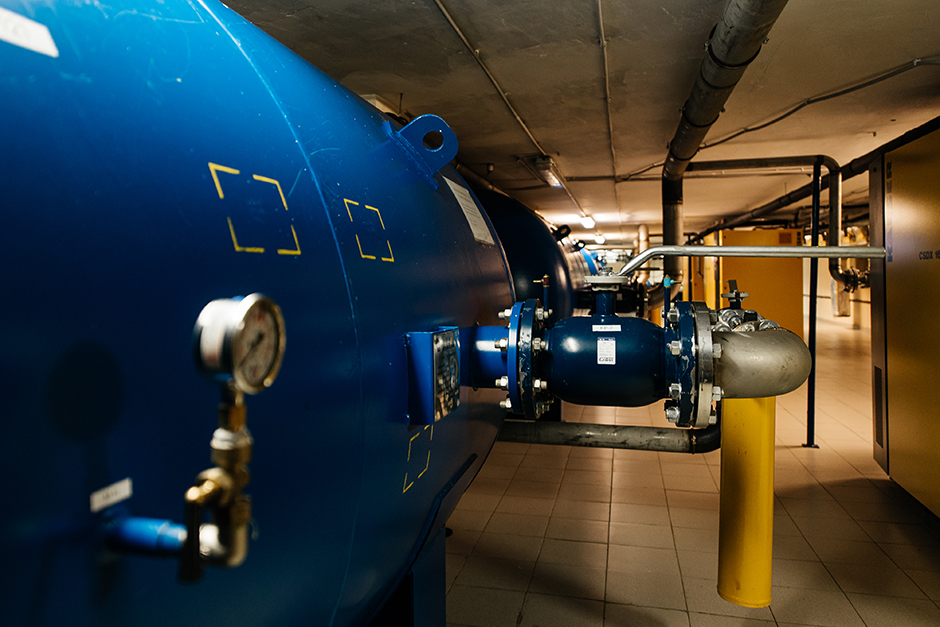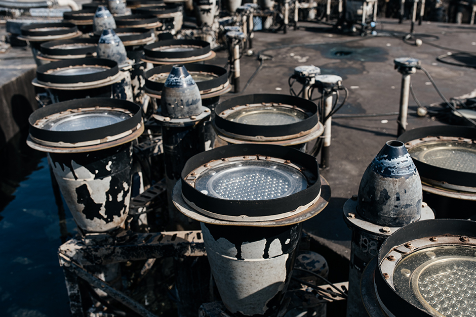 В основание фонтана встроены два вида пушек, выбрасывающие струи воды на высоту 30 и 70 метров. Пить эту воду, конечно, нельзя — это то же самое, что пить воду из лужи. А вот если она попадет на кожу или одежду во время представления, ничего страшного не будет. Вода в фонтане самая обычная, которая бежит из водоканала. Она циркулирует по кругу: насосами выкачивается из емкости, проходит через фильтр, как в аквариуме, и выпускается обратно. Хлорки в ней нет. Во-первых, это небезопасно, а во-вторых, очень затратно – на 3,5 тысячи кубов воды пришлось бы 500 кубов хлорки. Раз в неделю воду в фонтан доливают, так как за время представлений ее становится меньше.