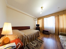 Все номера санатория – это одно-, двухместные, двух-, трехкомнатные люксы, характеризуются комфортностью, уютом. Комнаты оснащены экологически чистой мебелью, имеются холодильник, телевизор, кондиционер. Для люксов характерны телефоны и сейфы.