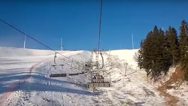 На горнолыжном курорте «Абзаково» в Башкирии женщина выпала из кресла подъемника, спасая своего сына. Кадры неприятного инцидента и спасательную операцию сняла свидетельница произошедшего.