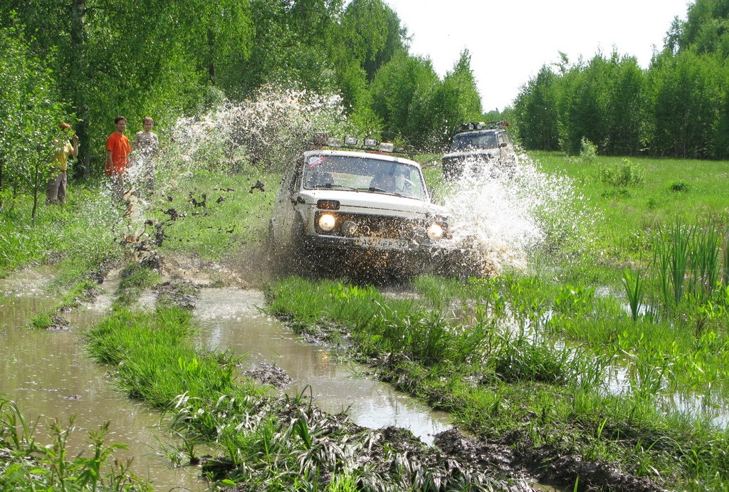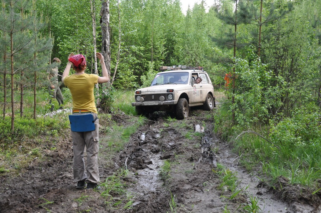 Наступает мой черёд проходить засаду. Скажу честно — времени у меня было достаточно, чтобы нагуляться и просчитать все возможные варианты прохождения. Советуемся со штурманом и приступаем к продвижению. Траектория оказалась верной и огородами-огородами при помощи нечеловеческой-кроликовой толкательной силы выбираемся к уже стоящим на сухом, автомобилям. Все в шоке. Едем дальше.
