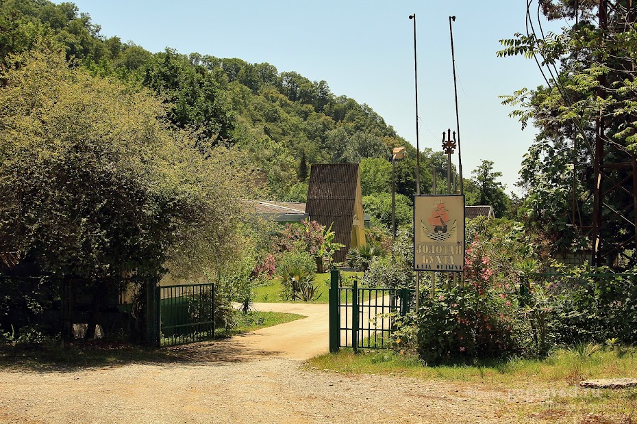 База отдыха «Золотая Бухта» расположена ущелье реки Ряпш среди лесов в районе заповедника Мюссера. До моря 200 метров. Собственный песчано-галечный пляж в 50 метрах от базы. На территории работает свой магазин, имеется парковка, оборудованы спортивные (баскетбольная и волейбольная), а также детская площадки, установлены столы для настольного тенниса и бильярда, есть пункт проката велосипедов. Расположение базы дает возможность заняться дайвингом, рафтингом, морской рыбалкой.Для размещения гостей на базе предусмотрены 18 деревянных домиках дачного типа или же 2х этажный дом. К их услугам номера «стандарт», предназначенные 2 и 3 человека. Каждый домик имеет совмещенный санузел, а уютные номера оборудованы кроватями, тумбочками, вентиляторами. В новом корпусе имеются кондиционеры. В столовой базы отдыха, оборудованной плазменным телевизором и удобной мебелью, отдыхающим предоставляется 3х разовое питание под заказ. Кухня разнообразная, простая и очень вкусная, с национальными элементами. Желающие могут сходить в кафе на пляже, в ресторан национальной кухни на соседней базе «Ряпш», купить свежие фрукты на рынке. Бронирование по телефону или на е-mail, предоплата 5000 руб.